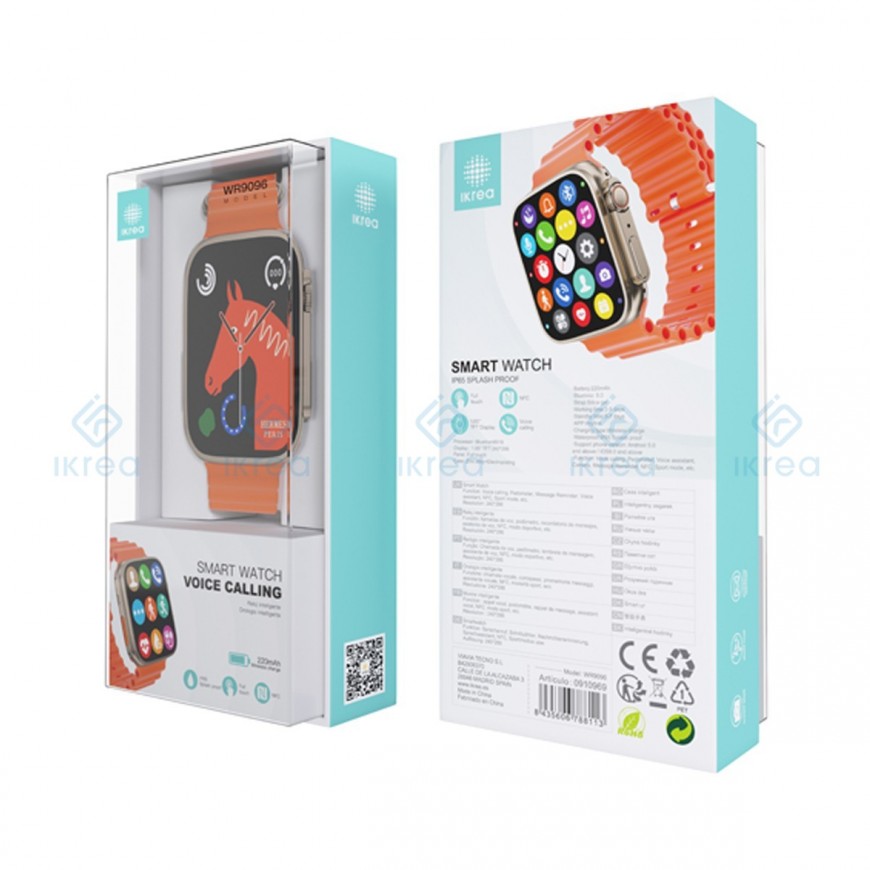 IKREA WR9096 SMART WATCH BLUETRUM8918 1.85” CARGA INALÁMBRICA 220MAH NARANJA